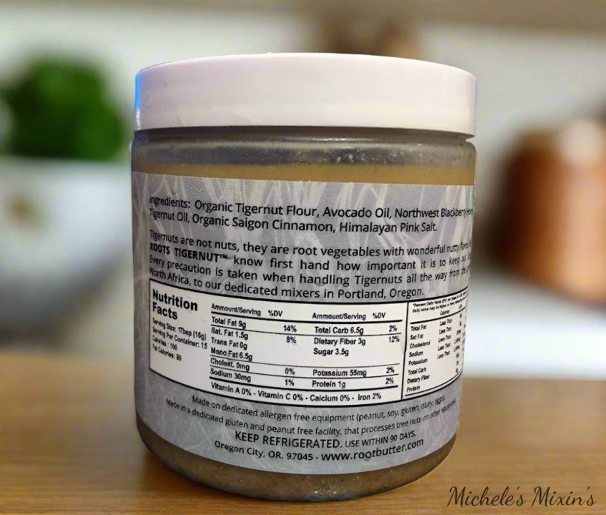 Ingredients: Organic Tigernut Butter, Avocado Oil, Raw Northwest Blackberry Honey, Organic Tigernut Oil, Organic Saigon Cinnamon, Himalayan Pink Salt